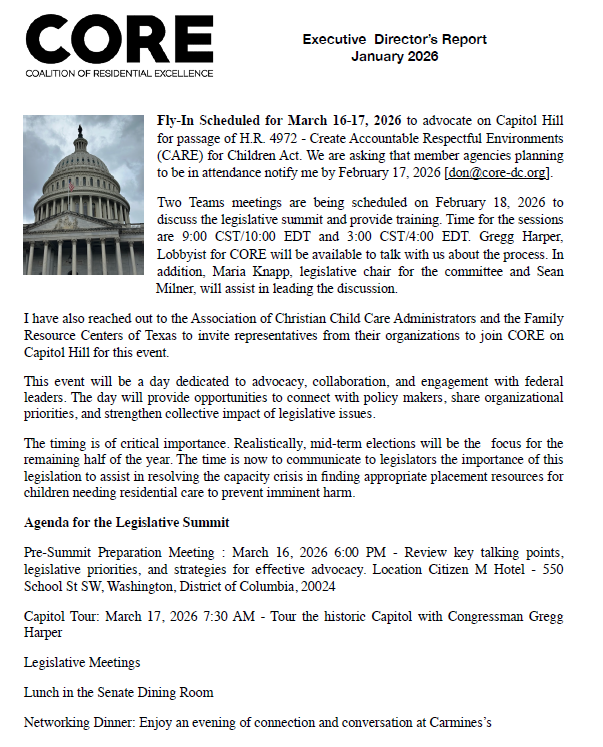 • The 2026 CORE NATIONAL CONFERENCE will be hosted by Florida Sheriffs Youth Ranches (Early October)